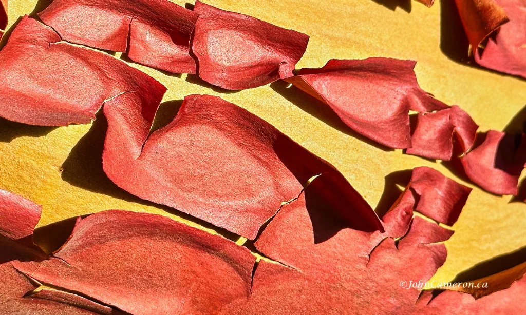 Each year the peeling bark falls off leaving a smooth layer of new bark underneath.