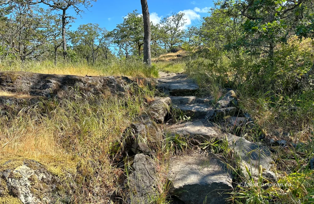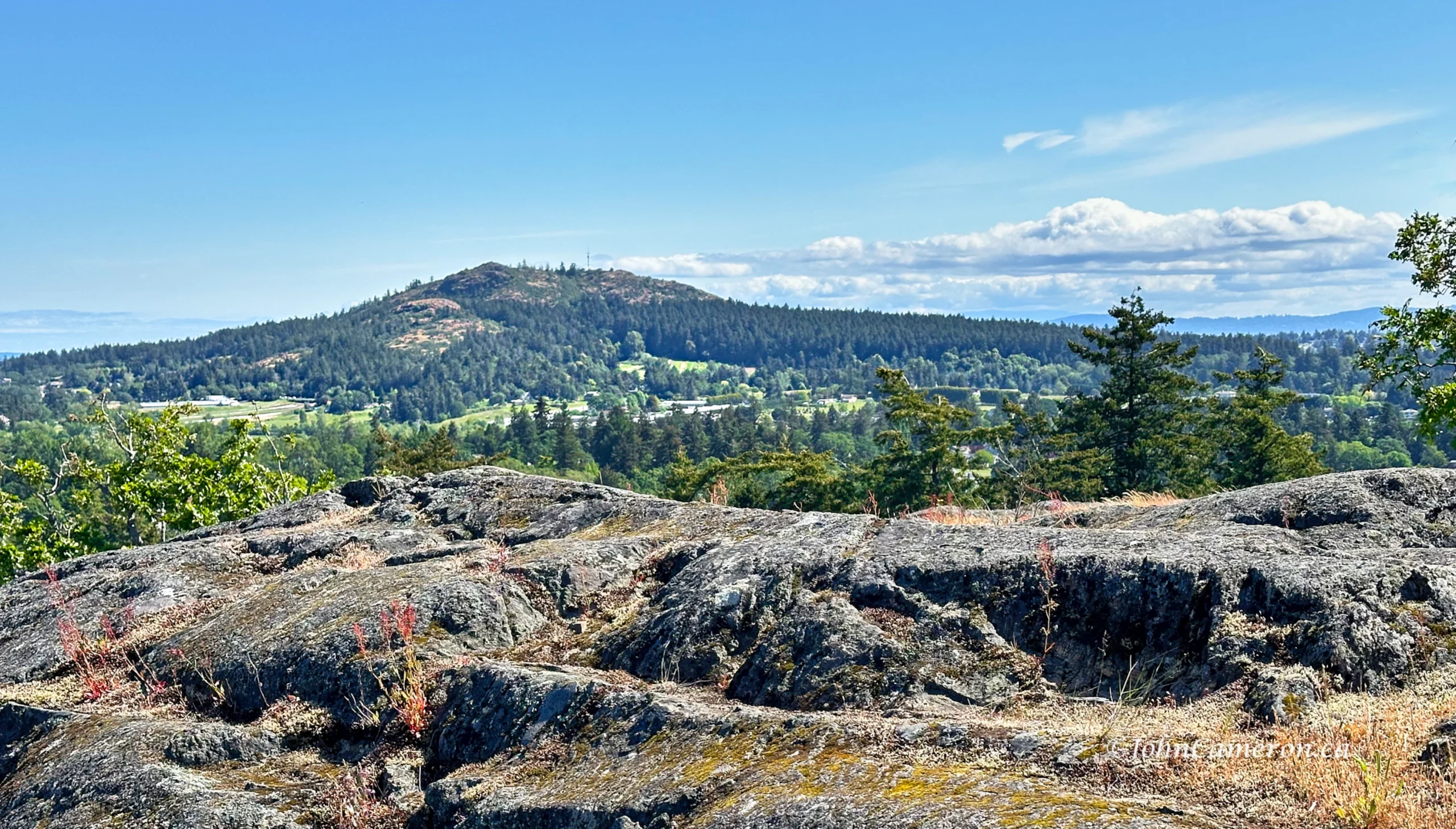 This Saanich gem provides views in all directions from a variety of lookouts. It’s a pleasant climb filled with spring flowers and Gary Oaks.