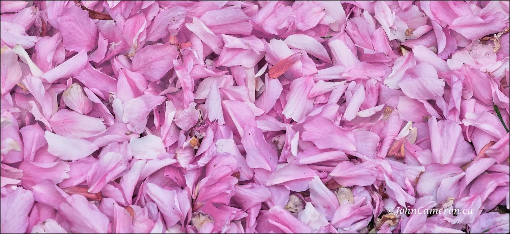 And looking down in the same spot, a collection of fallen petals along the edge of the road: