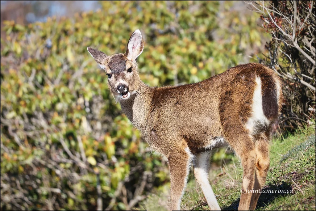 Fortunately I had my camera with me as I drove past this young deer. It had lots to say, even turning around and getting the last word in before disappearing into the bushes.