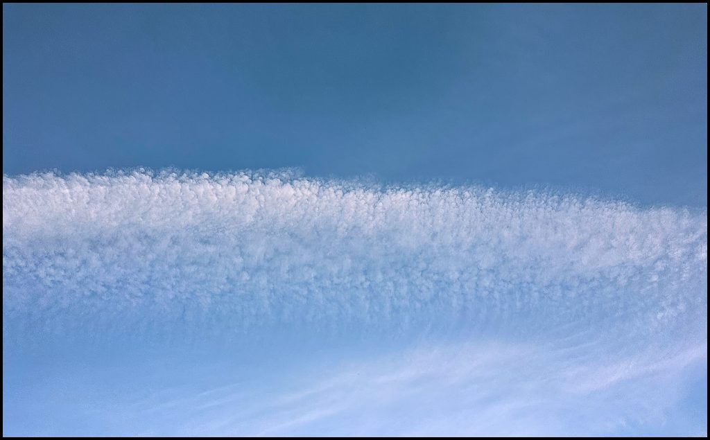 Then later in the morning as the sky colour changes, a nice look at an interesting contrail expanding across the entire sky.